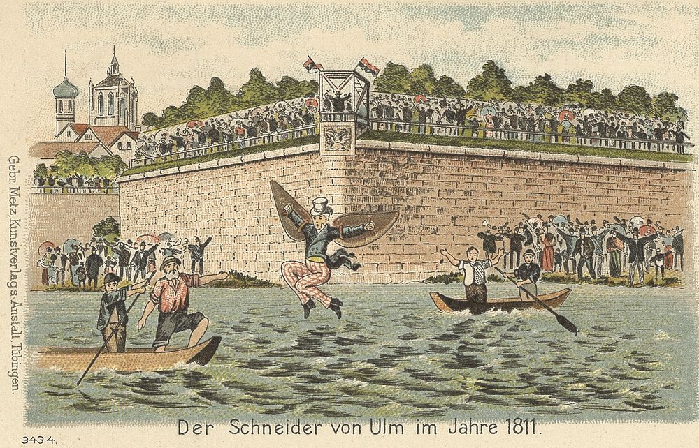 31 maja 1811 roku Albrecht Ludwig Berblinger, znany również jako Krawiec z Ulm, nie udowodnił, że jego maszyna jest w stanie latać i podczas pokazu wpadł do Dunaju. Zasłynął z tego, że skonstruował działającą maszynę latającą, prawdopodobnie lotnię. Czytaj więcej