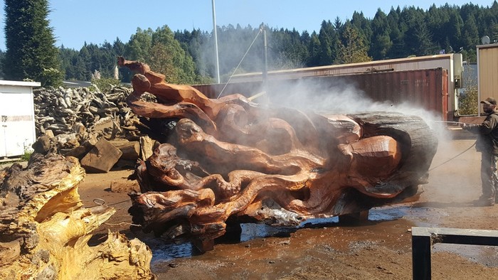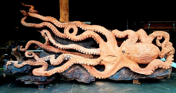 Utalentowany amerykański artysta Jeffrey Michael Samudoski wybrał dość rzadką dziedzinę sztuki – artystyczne piłowanie. Niedawno skierował swoją piłę na zwalone drzewo sekwoi, aby wyrzeźbić z niego gigantyczną ośmiornicę. Stworzenie potężnego głowonoga zajęło dużo czasu i wysiłku, ale wynik jest tego wart!