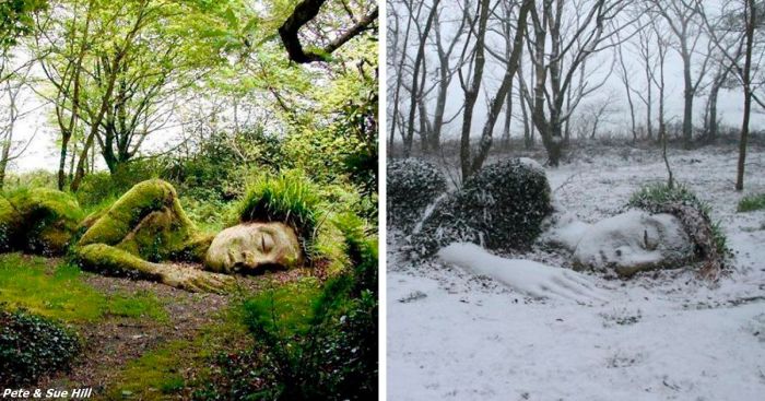 Heligan skrywa wiele tajemnic, a jedną z nich jest słynna rzeźba Dziewicy Ziemi, z miłością stworzona przez lokalnych artystów, brata i siostrę o imieniu Pete i Sue Hill. Rzeźba powstała w 1997 roku i stała się integralną częścią Leśnej Ścieżki w Zaginionych Ogrodach.