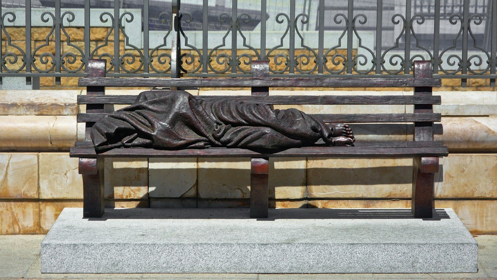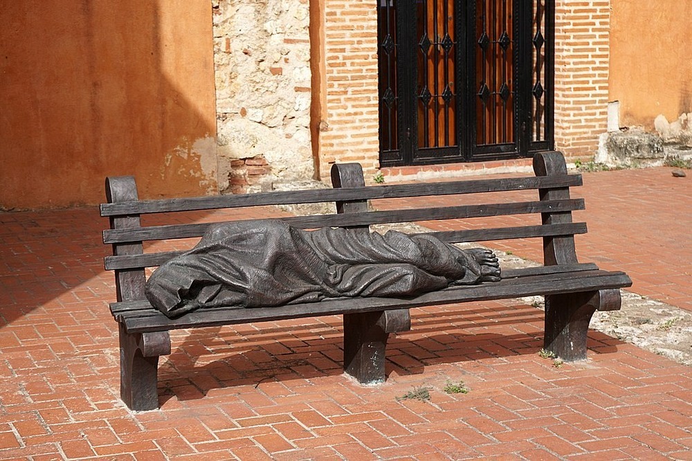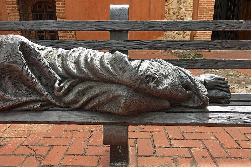 2013 roku kanadyjski rzeźbiarz Timothy Schmalz umieszcza rzeźbę przedstawiającą bezdomnego śpiącego na ławce w miastach na całym świecie. Naturalnej wielkości posąg z brązu wydaje się być anonimowy z twarzą i rękami ukrytymi pod kocem, ale ziejące rany na jego stopach wskazują, że osoba ta jest w rzeczywistości Jezusem.